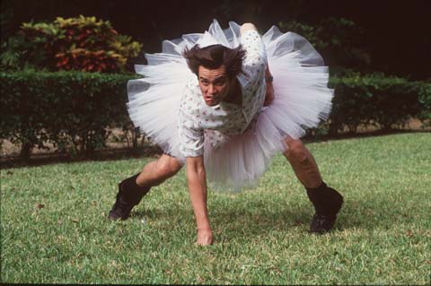 Jim Carrey playing some crazy football in the comedy Ace Ventura: Pet Detective (1994).